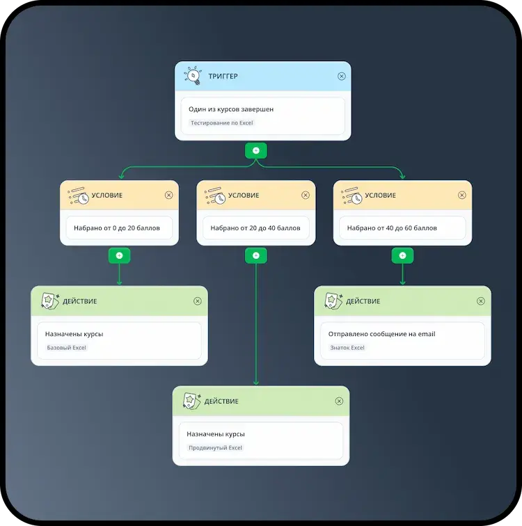 Платформа поддерживает разнообразные форматы обучающих материалов: SCORM, Видео, Тесты, Задания. А механики геймификации и магазин наград повышают вовлеченность учеников.